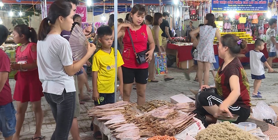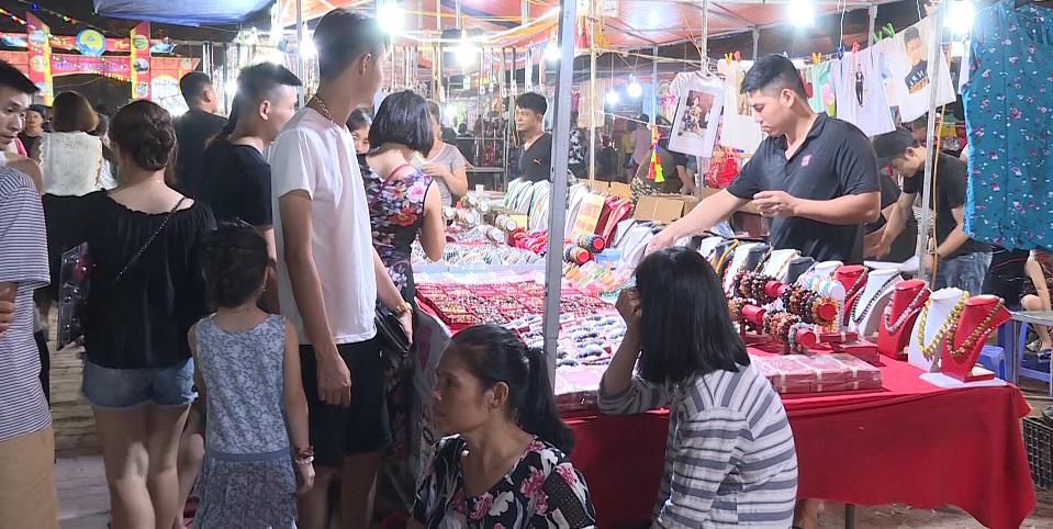 Cứ từ 8h tối, tại khu dịch vụ thương mại du lịch chợ đêm thành phố, đông đảo khách du lịch tới mua sắm, tạo nên không khí náo nhiệt.