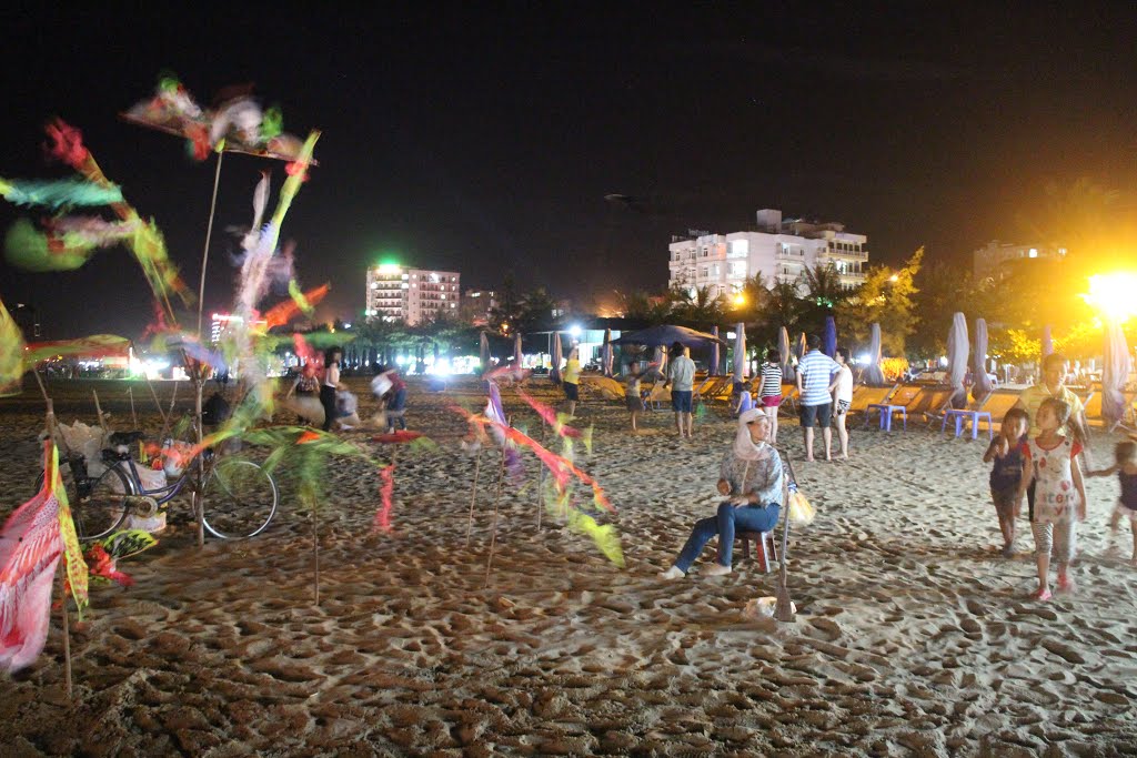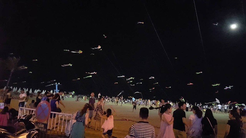 Với nguồn gió dồi dào từ biển cả bao la thì thả diều không chỉ hoạt động thường thấy ở ban ngày. Buổi tối ở Sầm Sơn cũng được phủ bởi những cánh diều đa sắc màu bay cao.