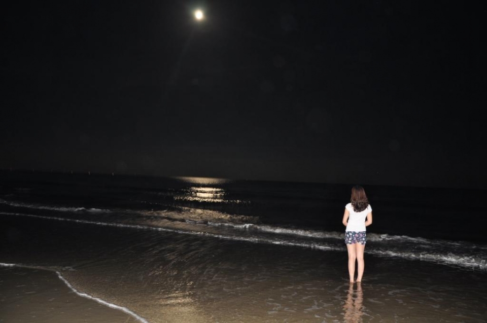Ngồi ngay trên bãi cát ngắm trăng, bạn sẽ cảm thấy cực kì yên bình và thoải mái. Đặc biệt vào những ngày rằm, trăng tròn và sáng trông sẽ rất đẹp.