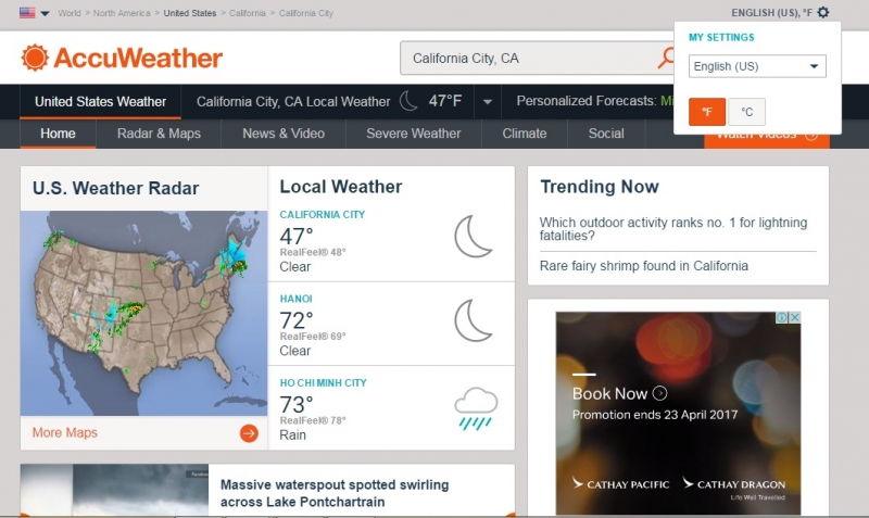 Truy cập website chuyên báo thời tiết