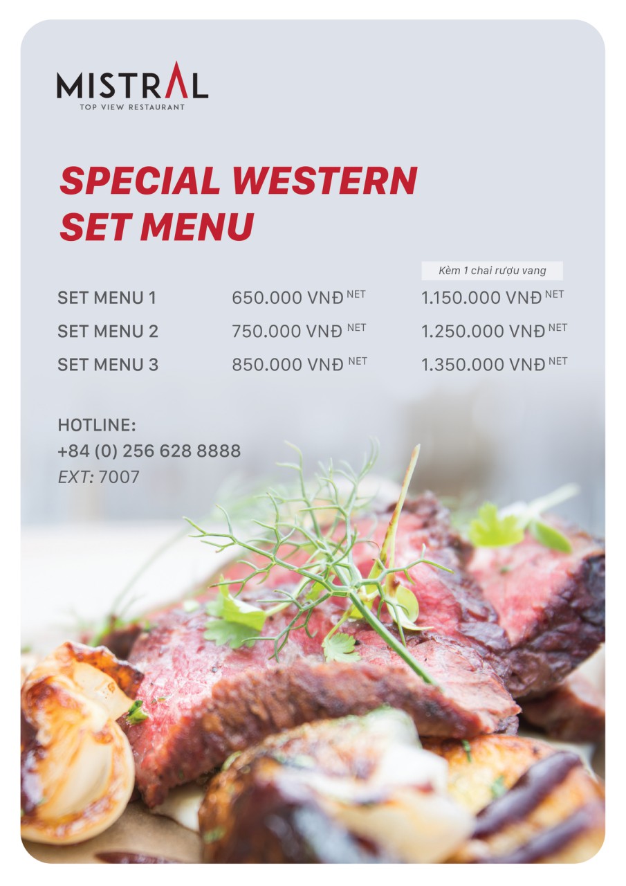 Bên cạnh đó, Mistral còn cung cấp một menu riêng dành cho những du khách yêu thích đặc sản phương tây.
