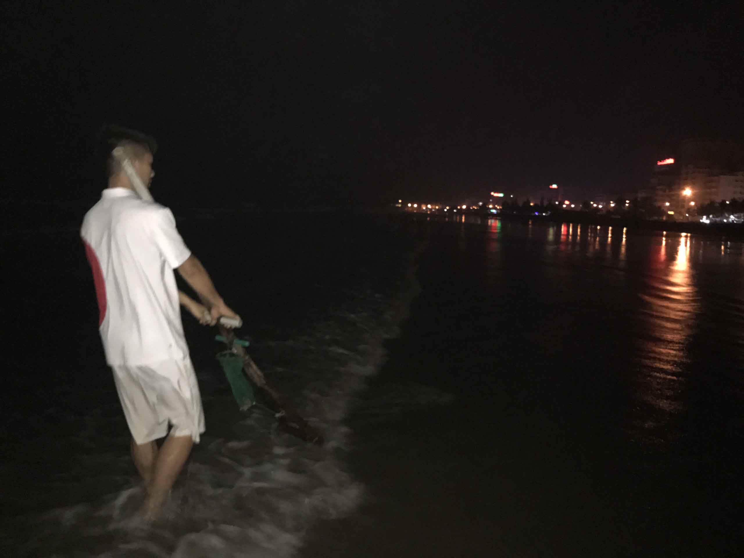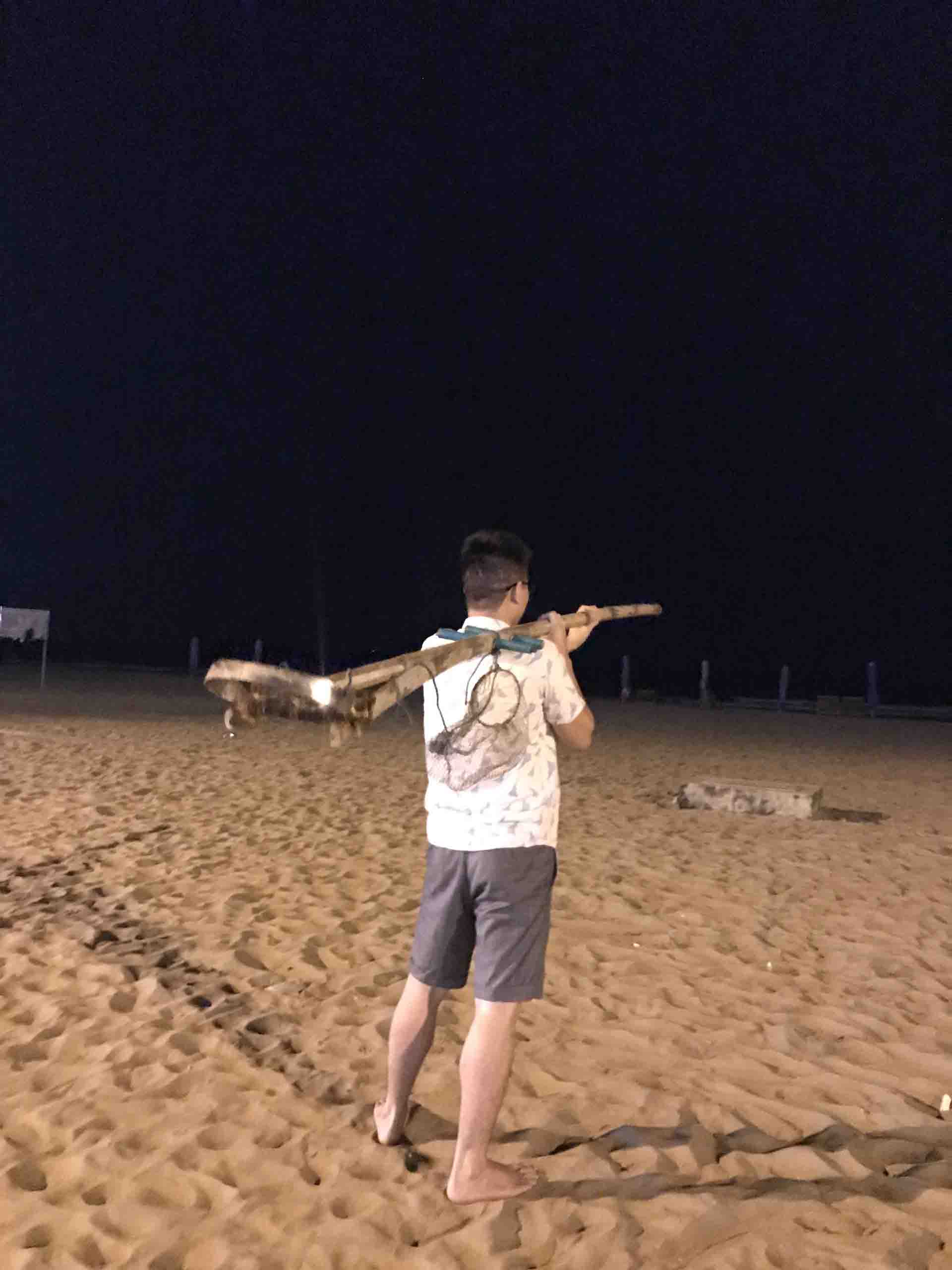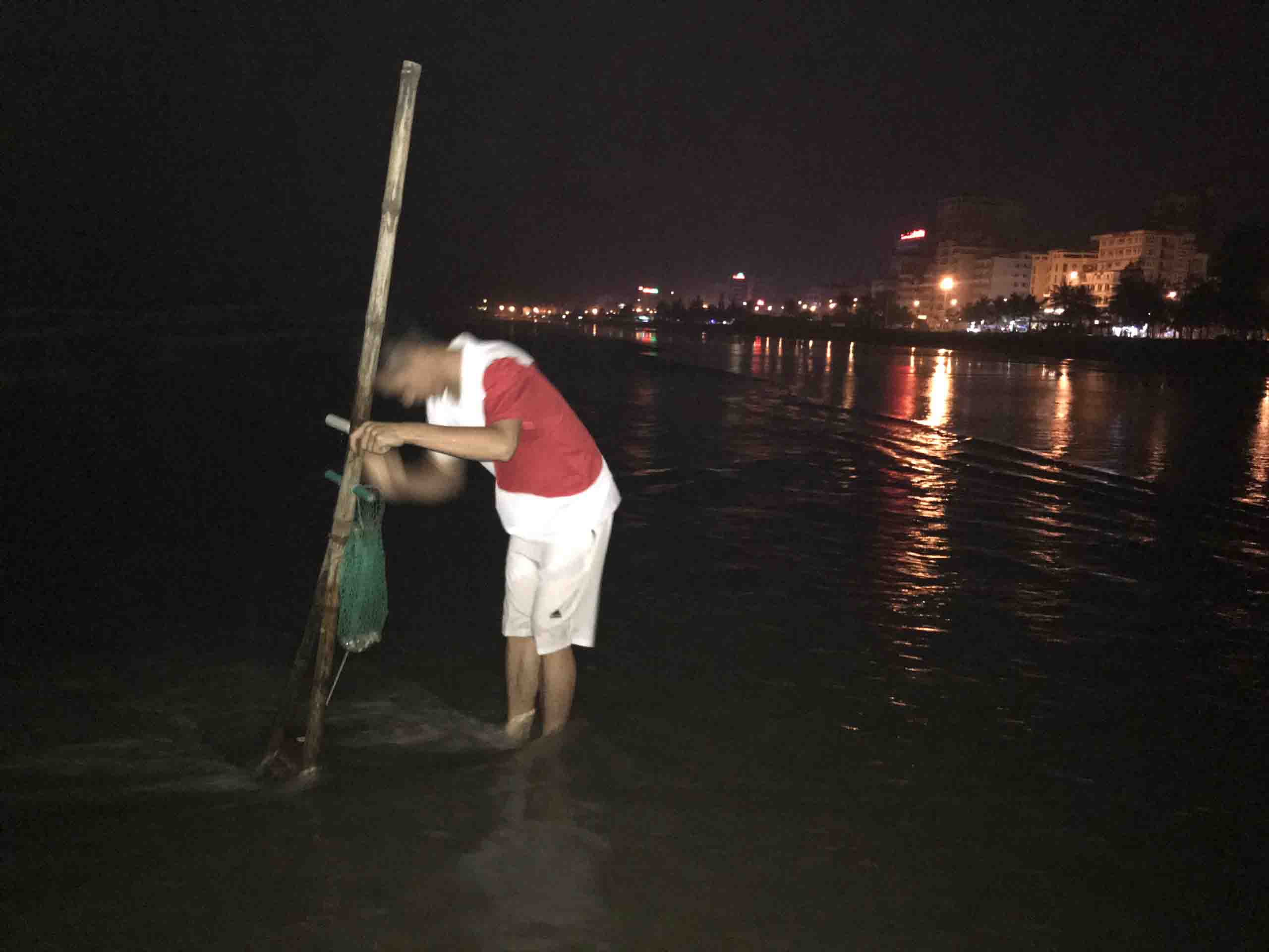 Thủy triều lên hắt con ngao từ ngoài biển vào. Nước rút đi, chúng lặn sâu dưới cát, con người muốn hưởng lộc biển thì phải chịu đổ mồ hôi. Trời tối đen như mực nhưng chúng tôi không cần soi đèn pin. Chỉ cần cảm nhận bằng đôi tay và lắng tai nghe tiếng ngao mắc vào lưỡi nạo. Lúc đầu chưa quen, mình liên tục cúi xuống dùng tay bới cát, nhặt ngao. Lúc sau cũng thành quen, giờ chỉ cần dùng chân khều, đôi khi đạp vào con cuống, vỏ ốc, đứt chân, cái cảm giác đau nhức không biết gì diễn tả.