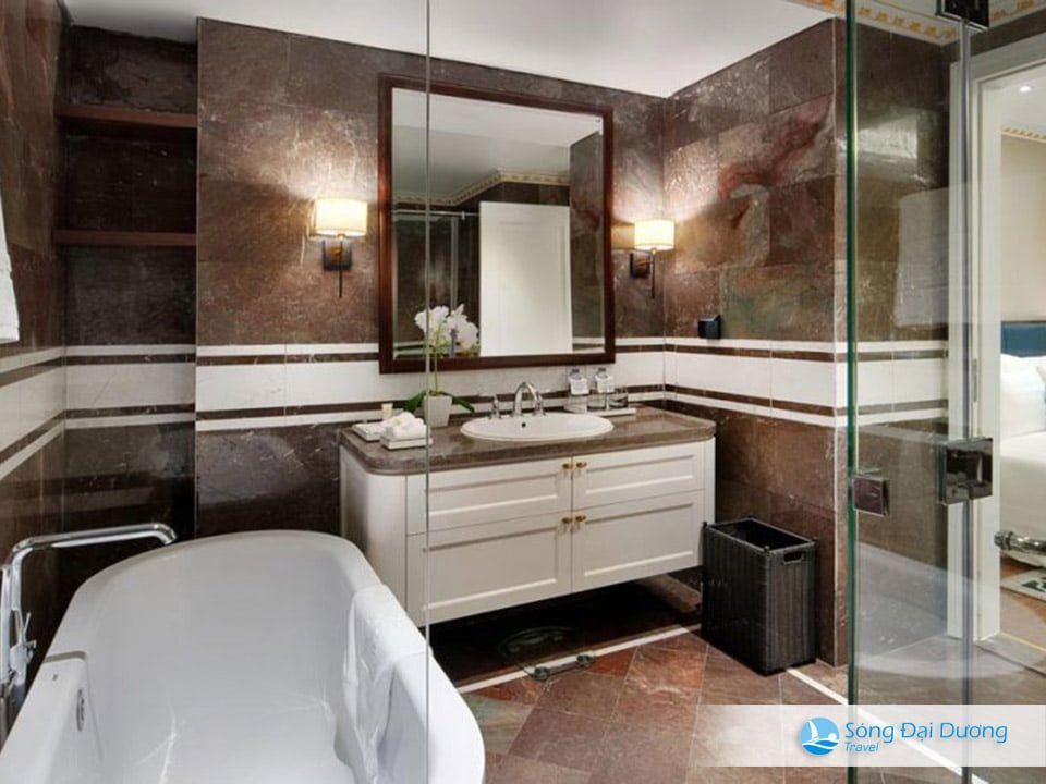 Phòng có diện tích 137m2 bao gồm 03 phòng ngủ, 02 phòng tắm và 01 phòng khách riêng biệt. Mỗi phòng ngủ lớn khép kín bao gồm 01 đôi và phòng vệ sinh lớn có bồn tắm sang trọng. Phòng khách riêng biệt có không gian thoải mái rộng rãi trang bị bàn ghế sofa, trà và cafe free cho 6 người trên hạng phòng này.