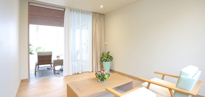 Phòng Seaview Living thuộc khu nhà vườn nhiệt đới liên kề, có tổng số 17 căn được thiết kế theo tiêu chuẩn 5* với tổng diện tích căn lên tới 159m2. Biệt thự nằm ngay cạnh bở biển, ngồi trong phòng thôi bạn cũng có thể thoải mái ngắm bở biển mộng mơ, xinh đẹp.