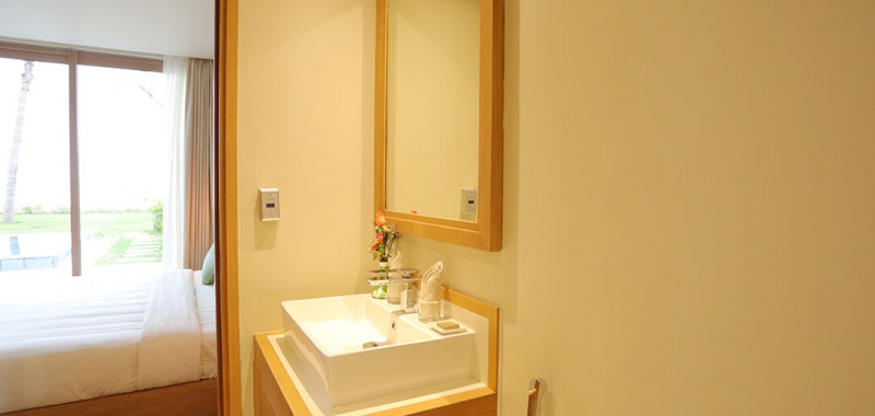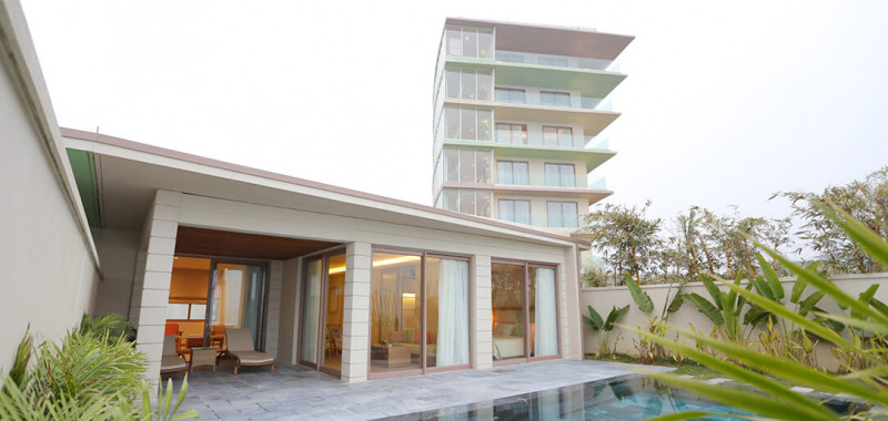 Đặc biệt bên ngoài vườn nhiệt đới còn được thiết kế bể bơi riêng biệt hướng thẳng ra biển cả bao la, xung quanh là khu vườn nhiệt đới tươi xanh, sân vườn bàn ghế thưởng trà nhẹ đem lại cảm giác thư thái cho một chuyến nghỉ dưỡng trọn vẹn.
