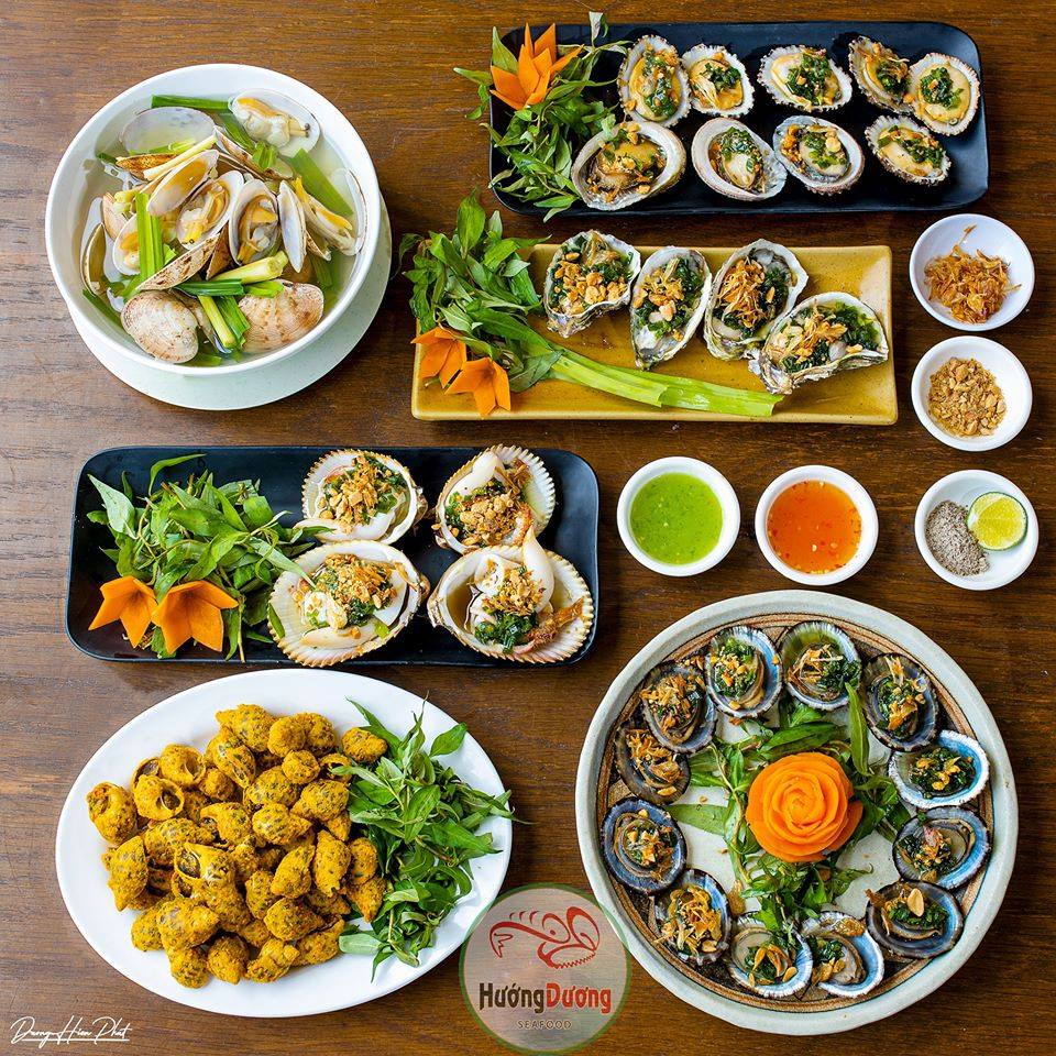 Nói đến ẩm thực biển nơi đây phải kể đến Hướng Dương Quán, nơi đây là nhà hàng nằm ngay Eo Gió khá nổi tiếng của du lịch Quy Nhơn.