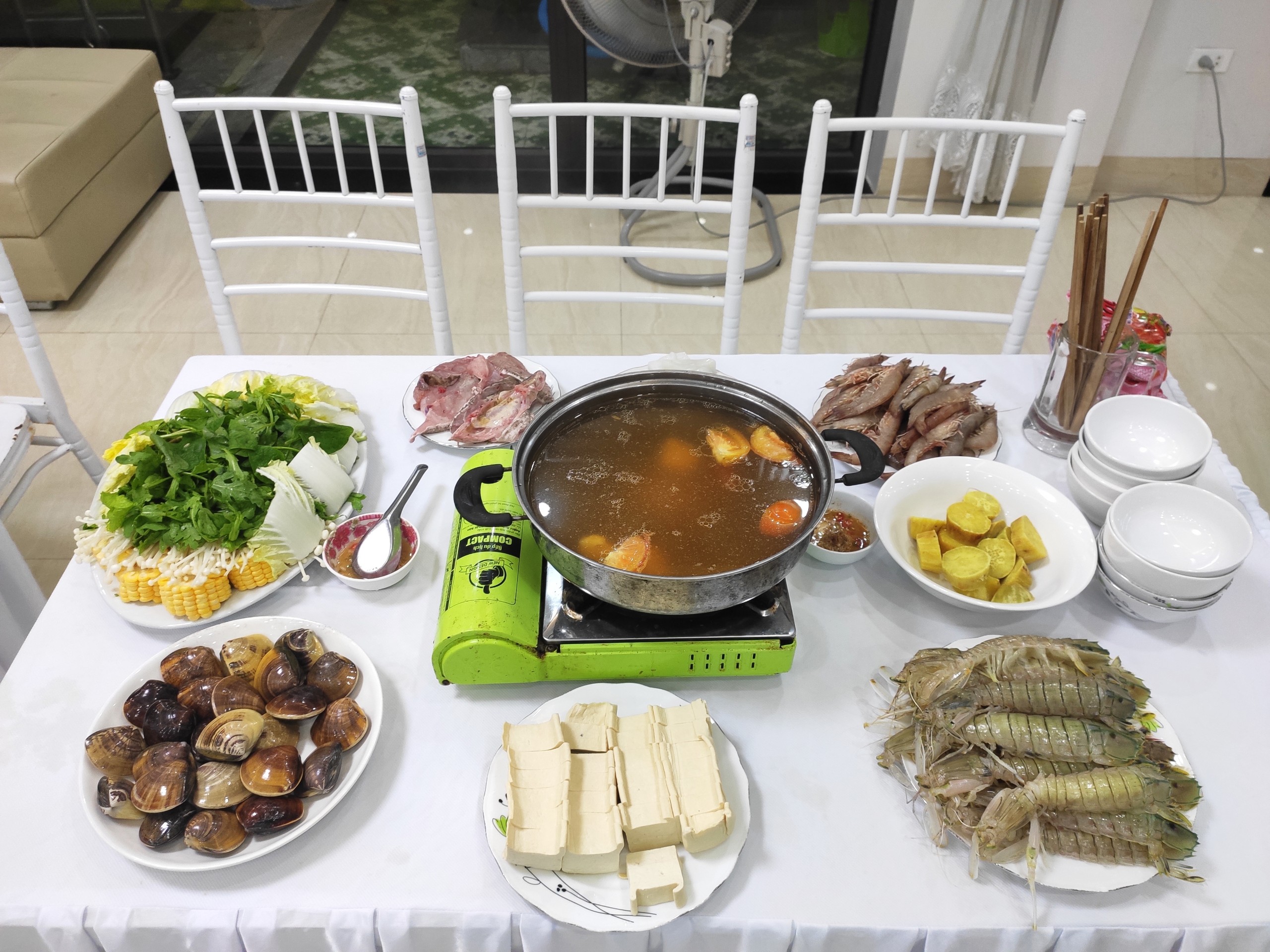 lẩu hải sản20h30 – 21h00: Sau khi ăn uống thì bọn mình cũng tự dọn dẹp luôn.