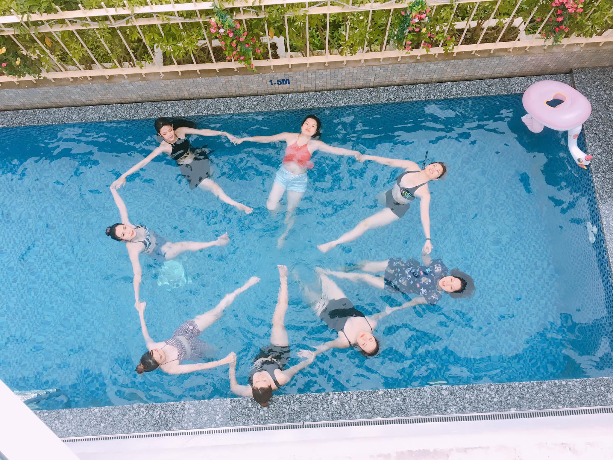 Khá thích hoạt động này, nước mát, sạch lắm nha các bạn, nhưng có vẻ hơi chật cho 10 mạng tụi mình.