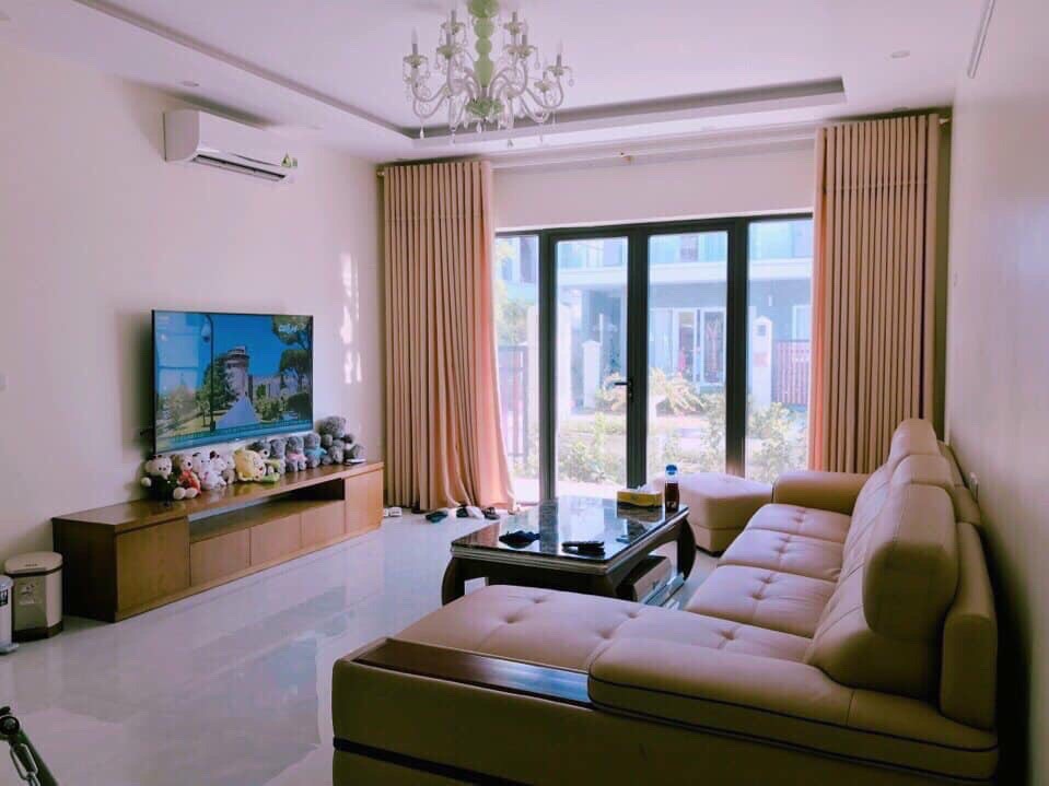 Phòng khách của Villa được thiết kế theo phong cách Châu Âu, đơn giản mà tinh tế. Phòng được bày trí đủ đồ như: Bàn ghế Sofa, Tivi LCD, loa đài, tủ gỗ sang trọng,…